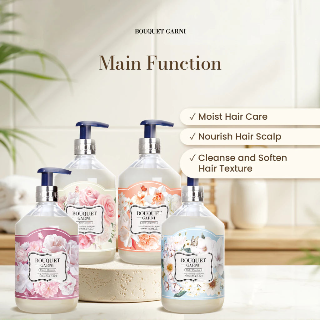 Shampo ini memberikan aroma rose garden yang tahan lama, membantu menjaga kelembapan rambut serta memberikan perawatan pada rambut. Formula ini dirancang untuk membantu meningkatkan elastisitas rambut, menjadikan rambut terasa lebih halus.