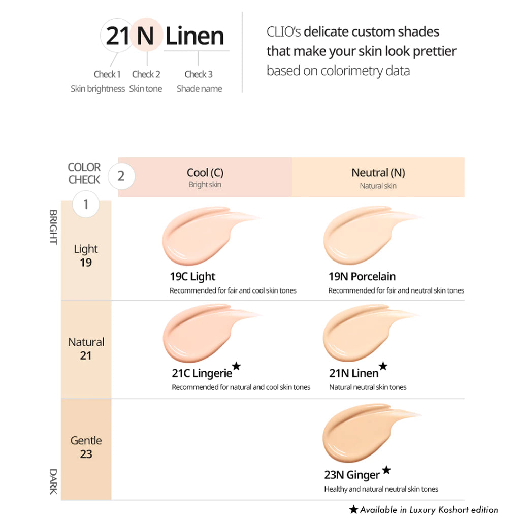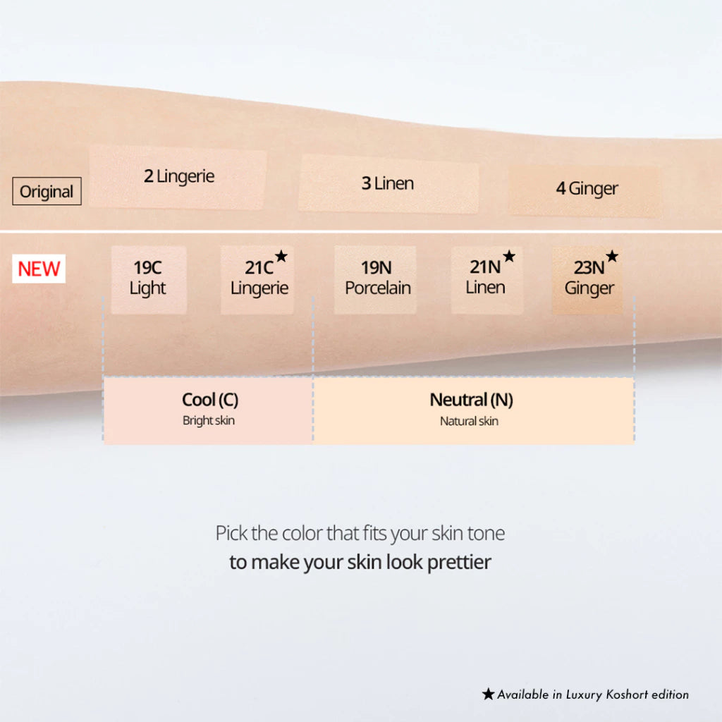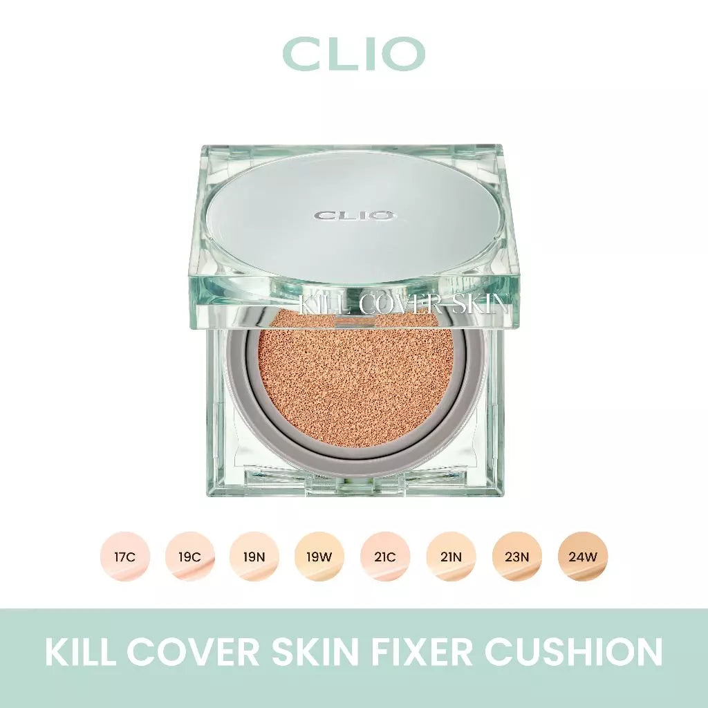 Cushion terbaru dari Clio, Kill Cover Skin Fixer Cushion, hadir dalam empat shade untuk menciptakan kulit sempurna dengan hasil akhir semi-matte yang powdery. Clio Kill Cover Skin Fixer Cushion Set adalah foundation cushion terbaru dari Clio yang tersedia dalam 5 shade untuk menghasilkan kulit flawless dengan finishing semi-matte powdery. Formula ringan ini melekat mulus pada kulit tanpa menggumpal. Menutupi noda dan menyamarkan pori-pori besar untuk tampilan kulit seperti telur rebus. Tahan hingga 54 jam dengan daya tahan yang lama. Puff hexagon yang dirancang khusus memungkinkan aplikasi makeup yang lebih presisi.