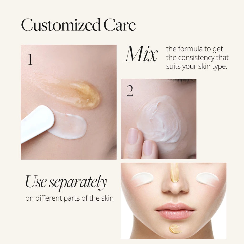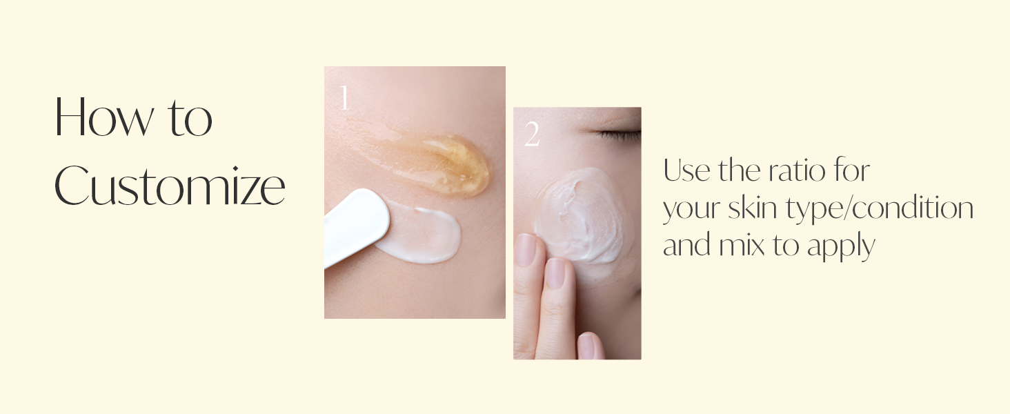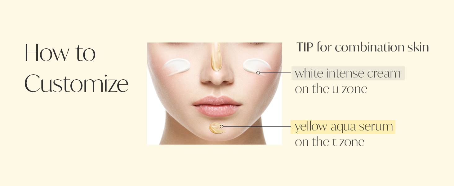 - Penggunaannya, dapat menyesuaikan rasio [Aqua Serum] dan [Intense Cream] sesuai dengan jenis & kondisi kulit Anda kapan saja.