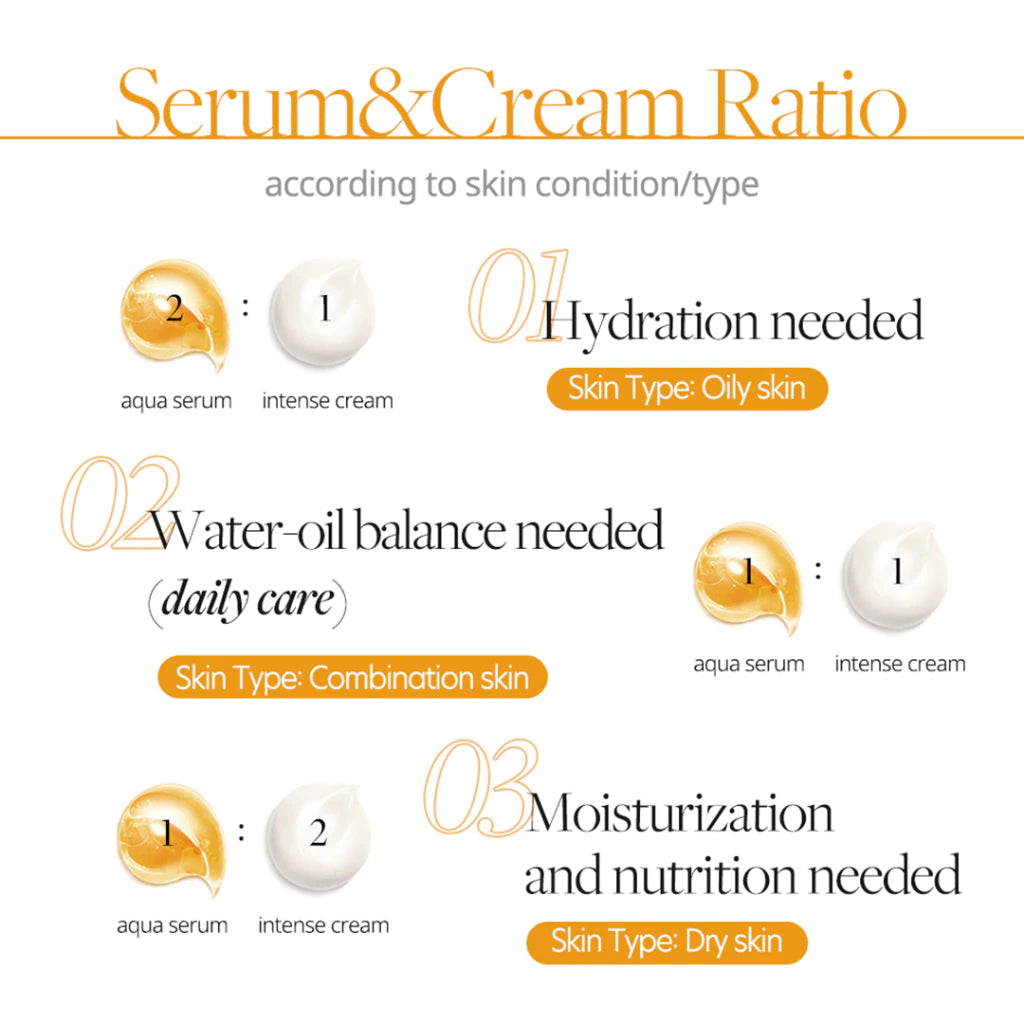 - Rasio Aqua Serum : Intense Cream = 1 : 1 ATAU