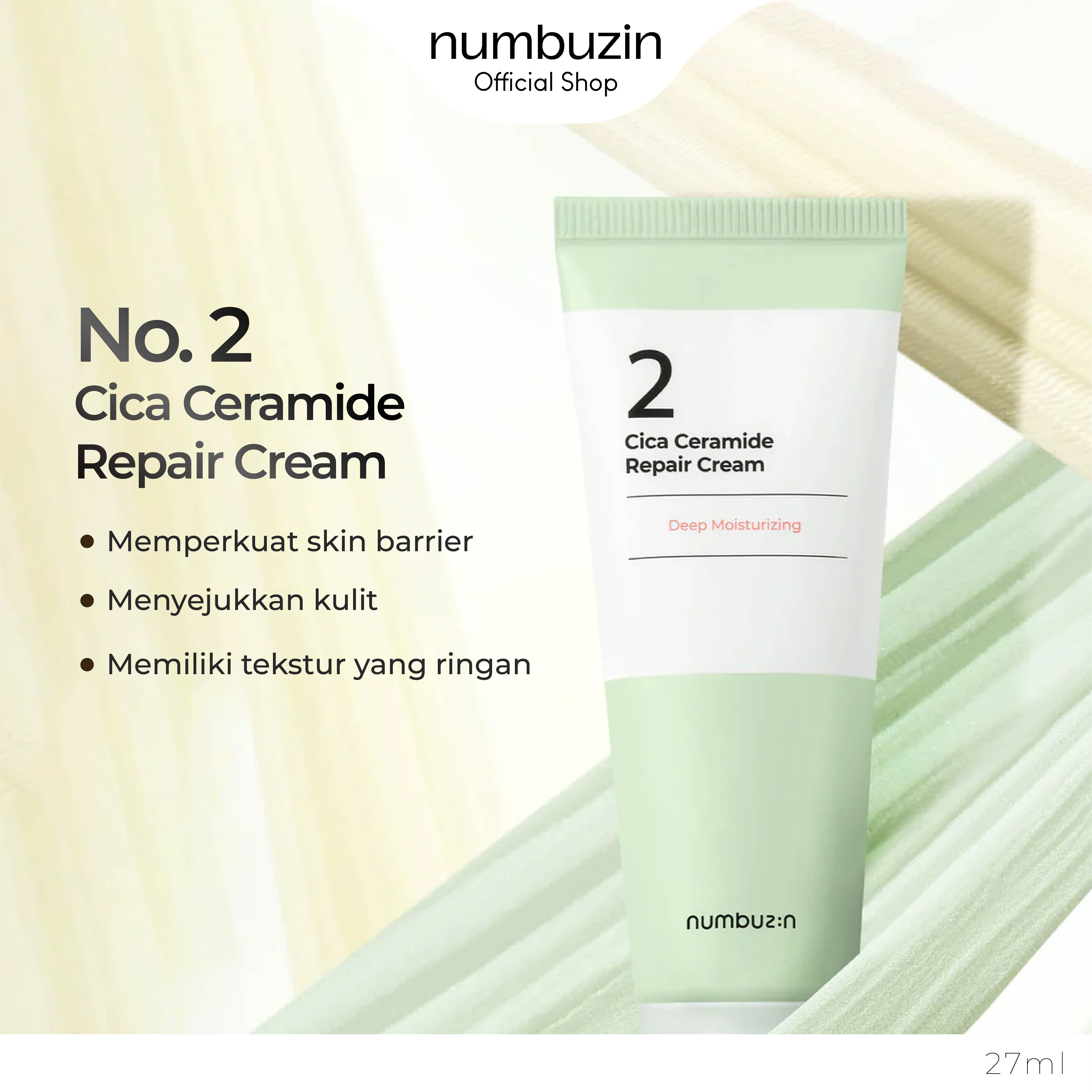 - No.2 Cica Ceramide Repair Cream Renewal dari produk No. 2 Cream dengan kandungan Cica yang lebih banyak dan isi produk 20% lebih banyak