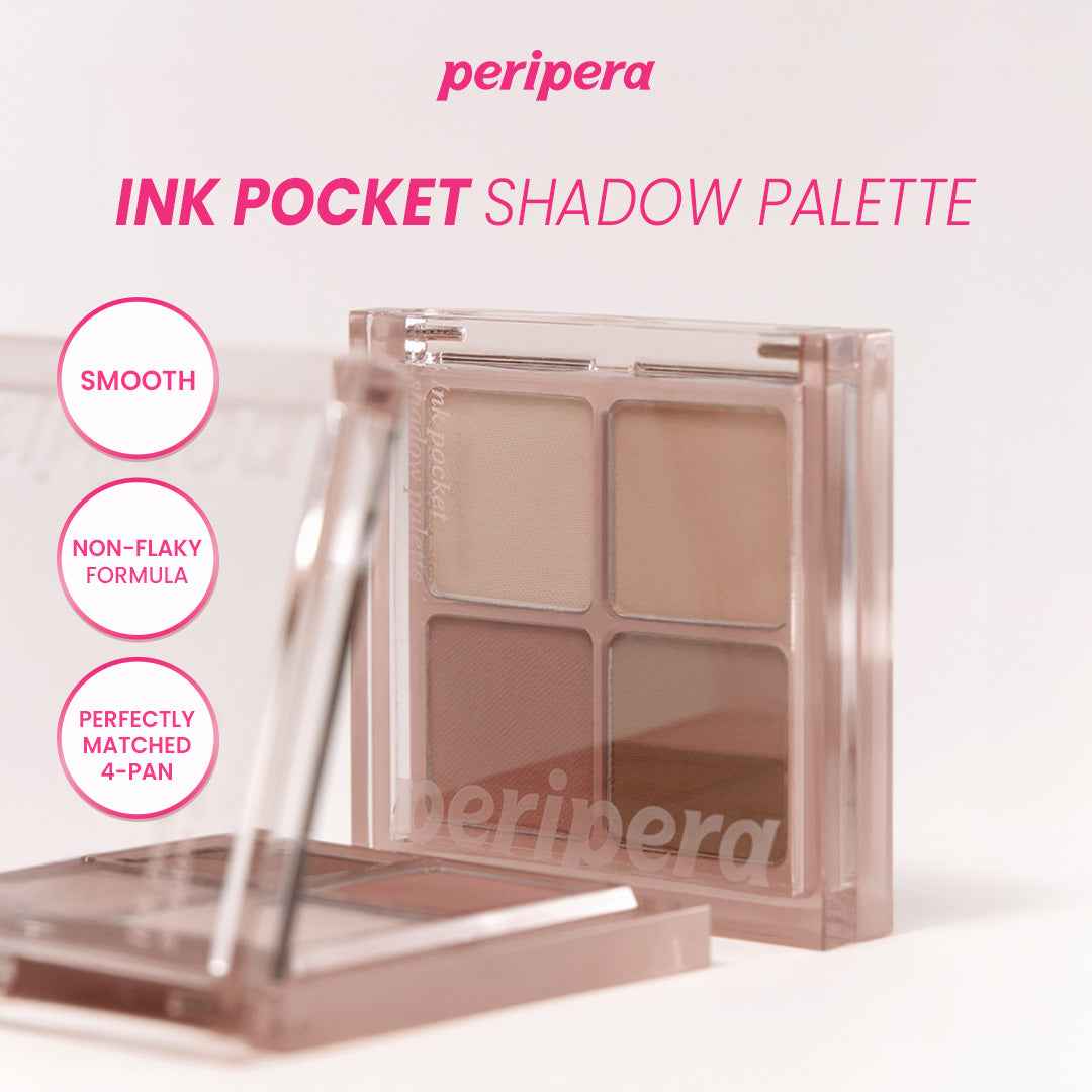Peripera Ink Pocket Shadow Palette adalah palet eyeshadow quad 4 warna yang ringkas, menampilkan campuran hasil akhir matte dan glitter, dirancang untuk tampilan makeup yang mudah, serbaguna, dan praktis untuk dibawa bepergian. Dikenal karena pigmentasinya, pilihan warna yang cocok untuk semua warna kulit dan tahan lama, palet ini menawarkan perpaduan yang halus dan hadir dalam kemasan trendi yang travel-friendly, bagian dari berbagai koleksi bertema.