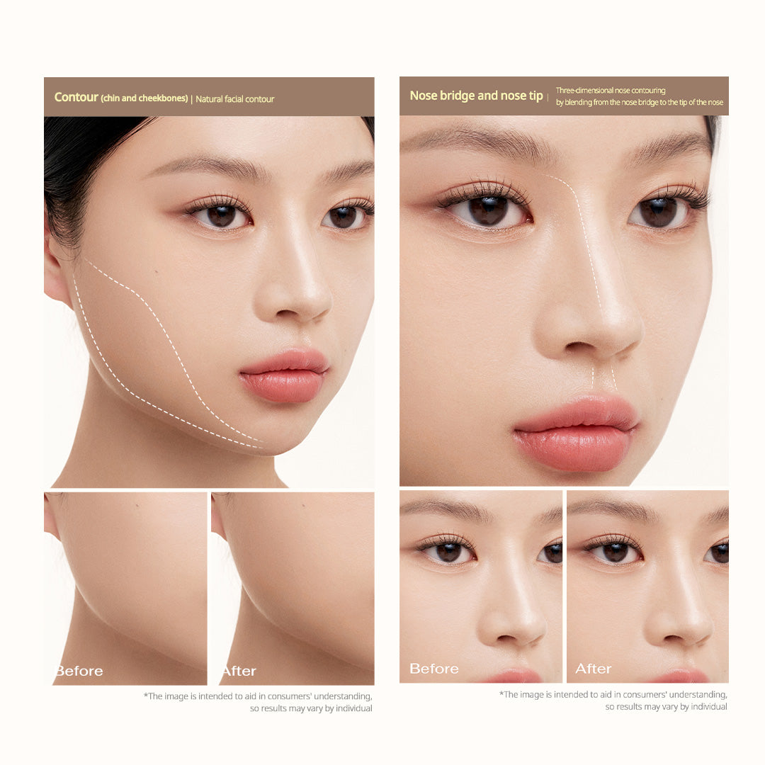 Aplikasi Serbaguna: Ideal untuk shading pangkal hidung, garis rahang, cupid's bow, dan aegyo-sal.