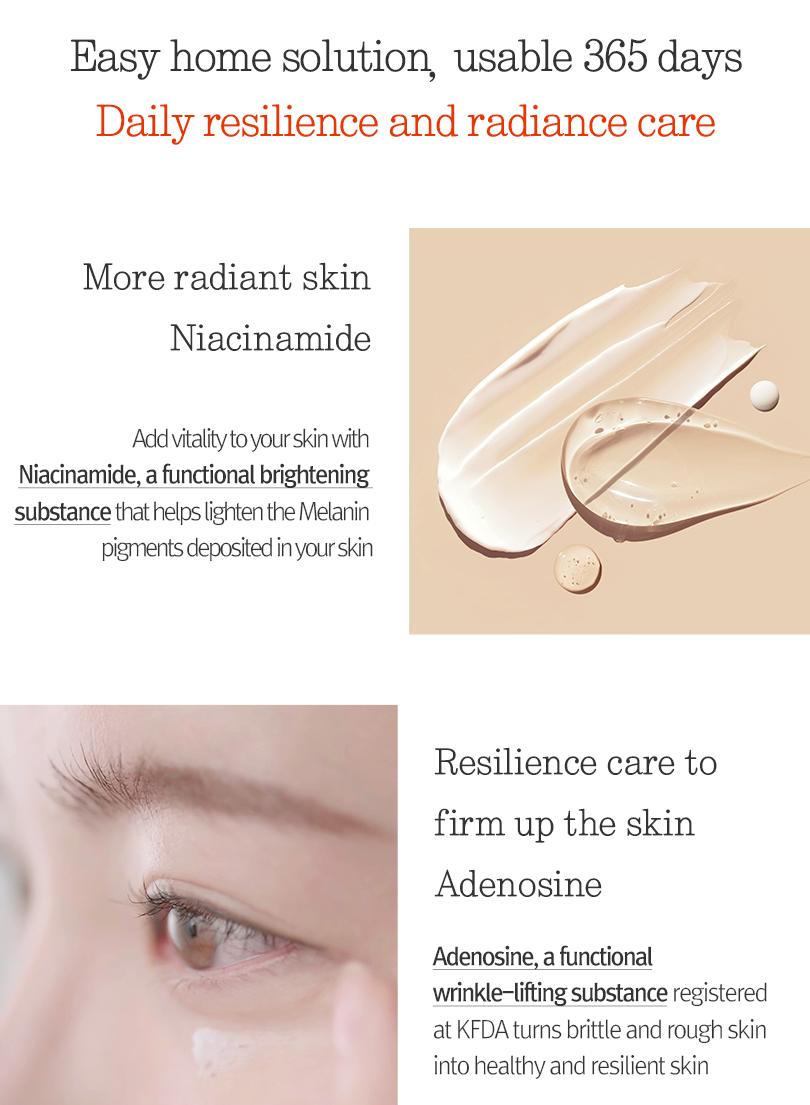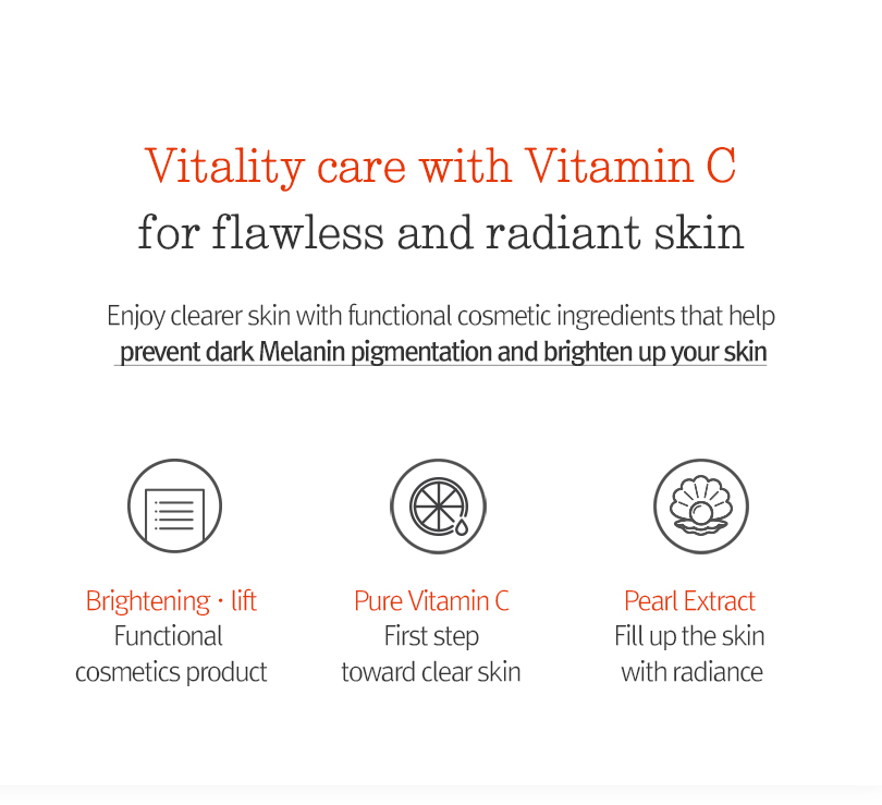 Serum dengan kandungan utama Vitamin C dan Niacinamide yang dapat mencerahkan dan menyamarkan noda kehitaman di kulit. Dilengkapi dengan Adenosine untuk merawat keremajaan kulit, PHA untuk mengeksfoliasi kulit secara ringan, juga Panthenol dan Hyaluronic Acid untuk melembabkan kulit. Dengan pemakaian teratur kulit akan tampak lebih cerah, bersih, dan halus.