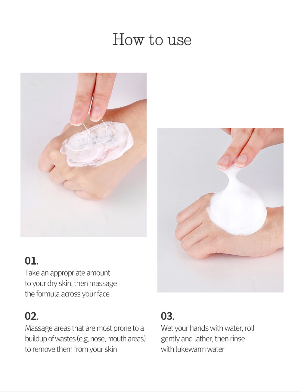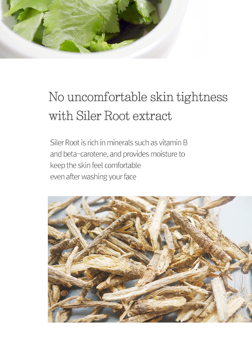 Cleanser dengan busa lembut yang dapat membersihkan kotoran dan sebum dalam pori-pori wajah secara efektif. Mengandung Siler Root Extract yang kaya akan mineral seperti vitamin B dan beta-carotene yang mampu untuk memberikan kelembapan pada wajah. Cleanser ini juga diformulasikan dengan surfaktan alami yang berasal dari kelapa untuk menjadikan kulit terasa nyaman setelah dibersihkan.
