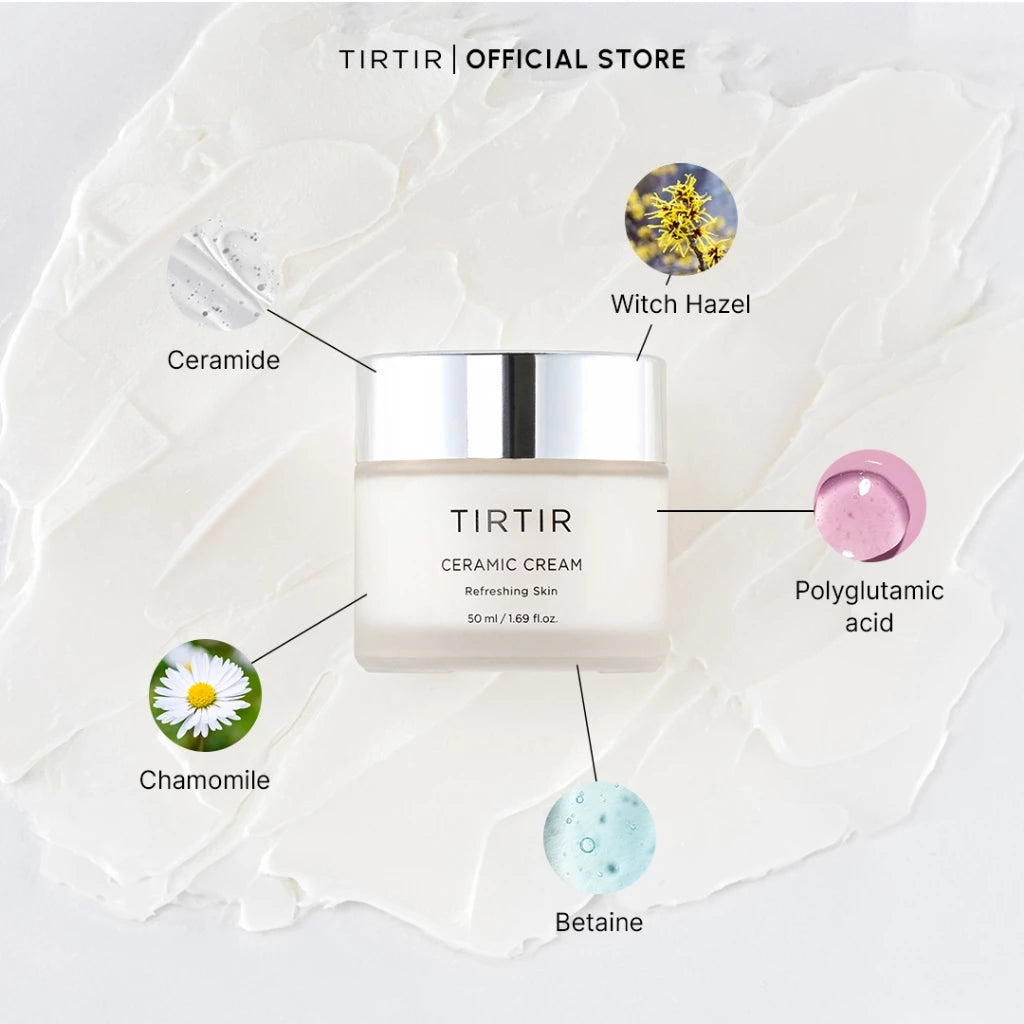 Ceramic cream yang mengandung Shea Butter, Olive Fruit Oil, Chamomilla Recutita (Matricaria) Flower Extract, yang berfungsi untuk memberikan nutrisi pada kulit agar terasa lembut dan merawat elastisitas, melembabkan kulit, merawat skin-barrier yang rusak karena terdapat kandungan Ceramide dan Trehalose.