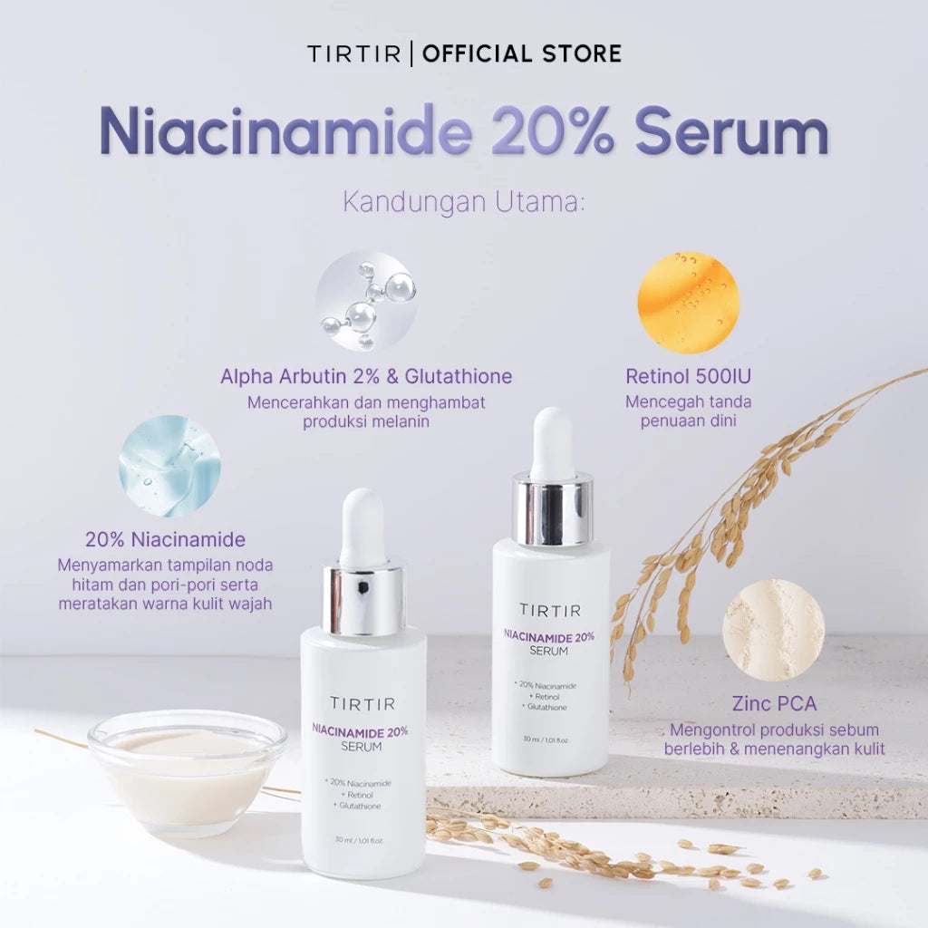 Niacinamide 20% serum merupakan solusi perawatan kulit ampuh dengan kandungan niacinamide konsentrasi tinggi (20%) yang mampu meratakan warna kulit, mengontrol minyak, dan meningkatkan hidrasi agar kulit tampak bercahaya dan awet muda. Membantu merevitalisasi dan mengencangkan pori-pori yang membesar, mengatasi warna kulit yang tidak merata, mengontrol minyak berlebih, dan membantu mencerahkan.