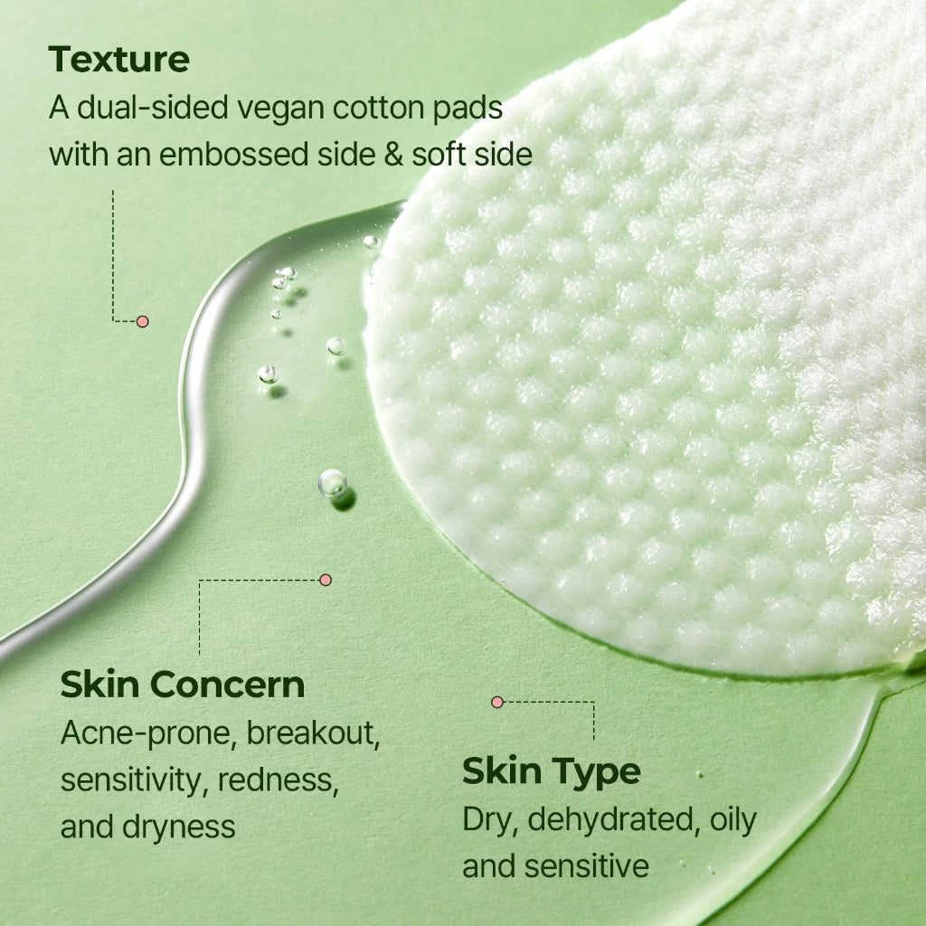 Step 1. After face washing, gently wipe the face in the direction of skin texture with the embossed side of the pad