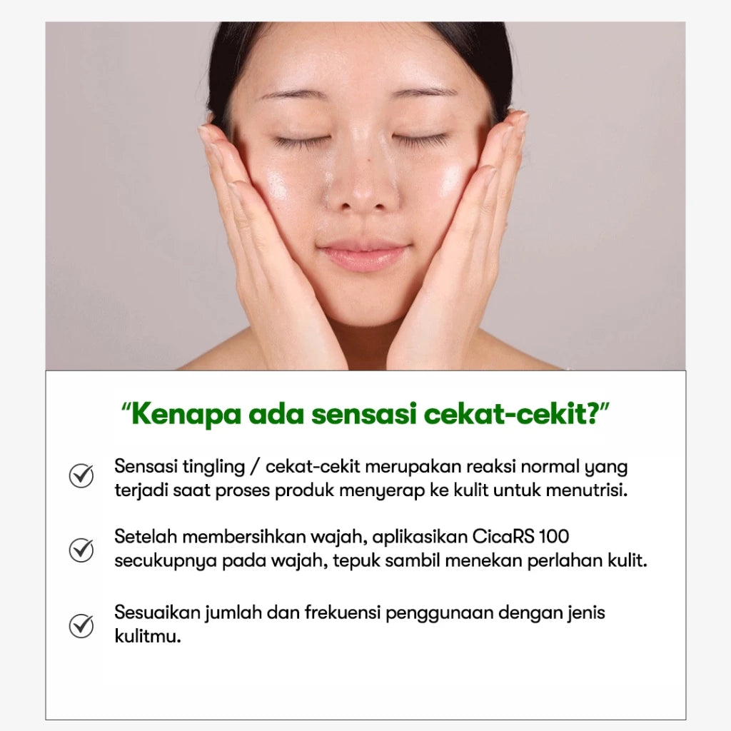 - Sensasi cekat-cekit atau menyengat [tingling] setelah penggunaan adalah reaksi yang natural dan normal, dikarenakan produk sedang menyerap dan menutrisi ke dalam kulit. Pastikan untuk baca bagian 'Cara Penggunaan' secara teliti.