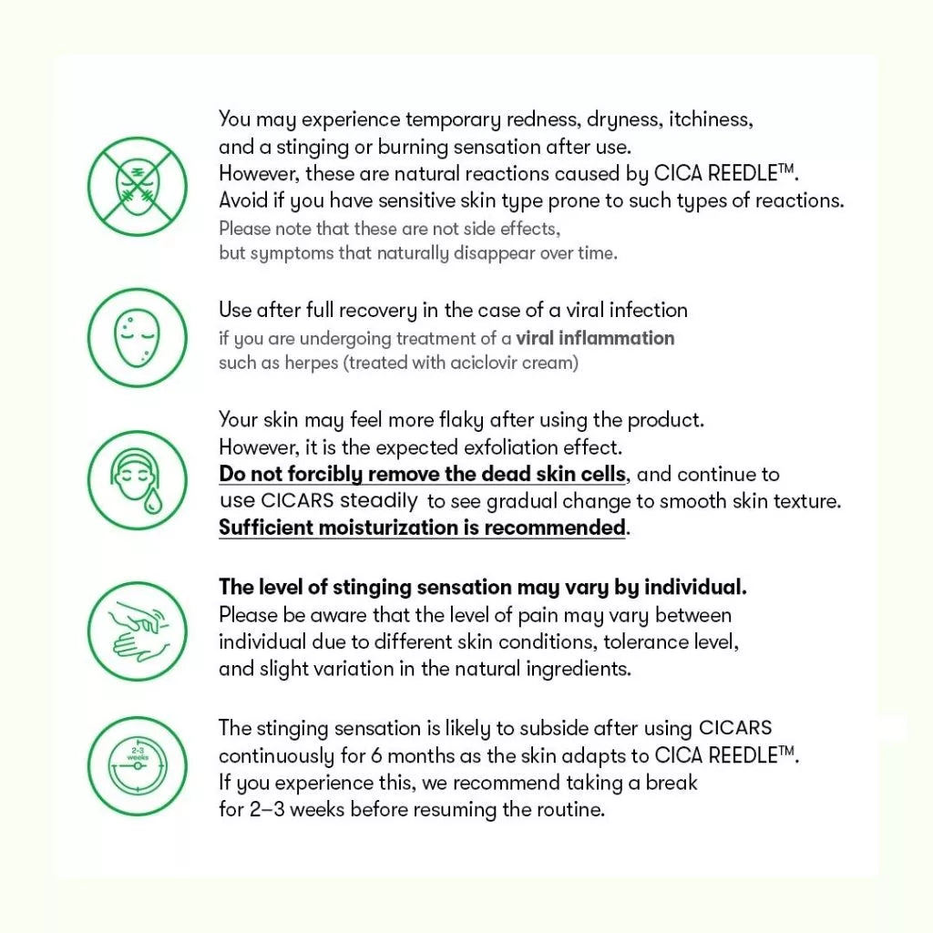 5. Diperkaya dengan bahan CICA REEDLE, CICALIAO, CICA HYALON untuk menjadikan tekstur kulit halus